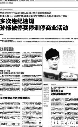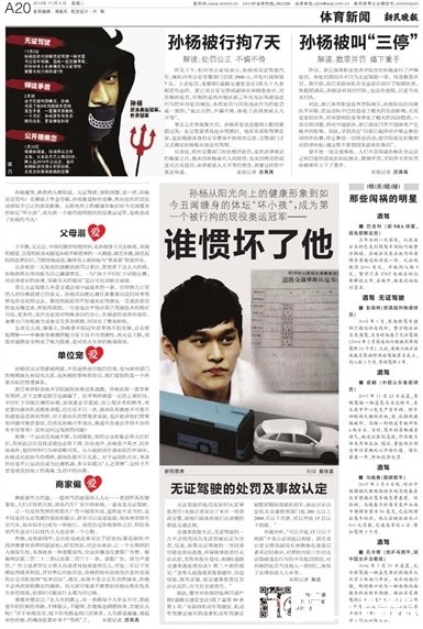 孙杨无证驾驶引发各报关注(/)