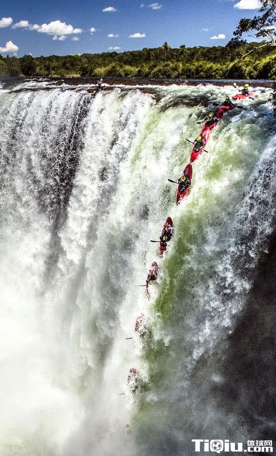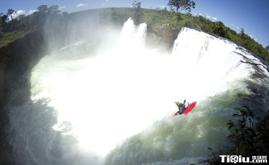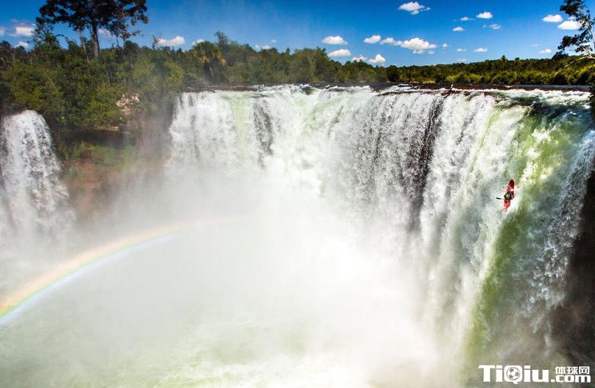 外国牛人瀑布极限划皮艇 展示了非凡的勇气(/)