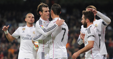 北京时间2015年3月16日消息,今天凌晨4点(当地时间15日晚间21点),2014-15赛季西甲联赛第27轮一场焦点战,皇马坐镇伯纳乌主场迎战莱万特。上半场贝尔梅开二度,打破个人9场进球荒,C罗运气不佳击中立柱,两次绝佳的射门均未破门;下半场双方均无建树,皇马2-0完胜莱万特...