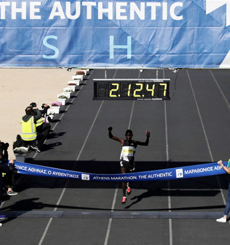 雅典传统马拉松赛启动 冲线瞬间别样精彩