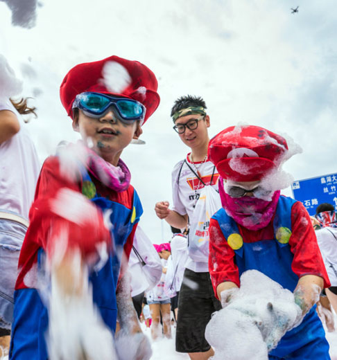 江苏无锡举办“泡泡跑” 市民尽享泡泡狂欢