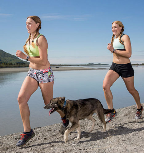 人与狗同锻炼的故事 双胞胎姐妹花与雪橇犬一同跑步健身