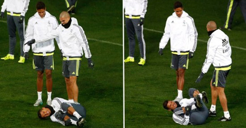佩佩踩翻C罗 皇马队内训练不和谐一幕