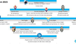 著名体育数据提供公司OPTA根据数据统计分析,评出了意甲2015年年度最佳阵容。上赛季夺得冠军的尤文图斯有三人入选,那不勒斯和佛罗伦萨各有两人,国米无人入围。...