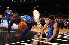 NBA常规赛篮网VS76人 篮网输球书豪头撞球架