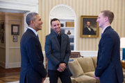 北京时间2月27日消息 今天金州勇士队球星斯蒂芬-库里造访白宫,参加联合国组织的“抗击疟疾”主题活动,期间他和总统奥巴马进行了近距离接触。随后库里表示,自己看到了总统接见总冠军球队的房间,并承诺会率队夺冠然后获得总统的接见,还透露了奥巴马很喜欢自己的队友...