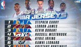 球衣销售榜库里压詹皇 威少第四哈登仅第十