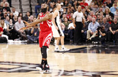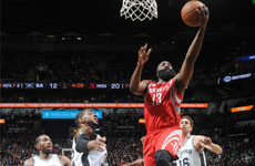 NBA常规赛3月7日火箭VS马刺,哈登持球单打打板命中。...