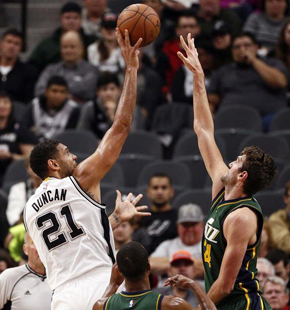 马刺VS爵士123-98 邓肯多项数据创赛季新高