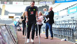 在客场对阵斯旺西比赛中,虽然蓝军最终2:2逼平带走一分,但是比赛中特里的受伤坚持解围鼓励了切尔西上下,最终特里只能靠着拐杖走出赛场。...