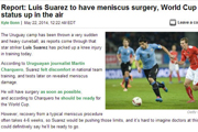 据香港媒体《星岛日报》资讯,乌拉圭头号王牌苏亚雷斯在上周四接受半月板手术后,两天后就在社交网站首次表示:“我将会在世界杯上阵”。不过,这位27岁利物浦前锋是否赶得及下月十五日首场小组赛对阵哥斯达黎加还需画上问号。...