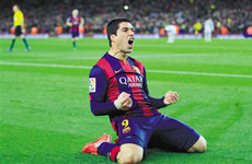 内马尔苏亚雷斯齐发威 巴萨三球完胜出线在即