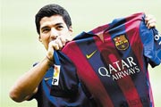 苏亚雷斯(Luis Alberto Suarez),1987年1月24日出生于萨尔托,乌拉圭足球运动员,现效力于巴塞罗那足球俱乐部。苏亚雷斯成名于阿贾克斯,2011年转会至利物浦,2013年获得欧洲金靴奖和英超金靴。2014年转会至巴塞罗那。
