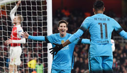 梅西两球内马尔助攻 巴萨客场2-0阿森纳