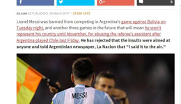 北京时间3月29日消息 今天凌晨,2018世预赛南美区迎来了一场焦点战。阿根廷客场对战玻利维亚,因为梅西之前辱骂裁判遭到FIFA禁赛4场,阿根廷少了梅西这员大将,阿根廷0-2玻利维亚输掉了比赛。...