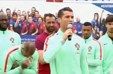 近日葡萄牙队参加了在法国举办的一项活动中C罗给球迷合影,活动尾声C罗还发表了演讲。C罗霸气的演讲尽显总裁风范。2016欧洲杯赛程、C罗图片、C罗和梅西谁厉害等更多C罗相关视频尽在体球网。...