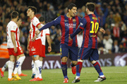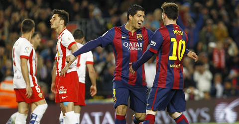 北京时间2015年4月9日消息,今天凌晨2时,2014/15赛季西甲第30轮一场焦点战在诺坎普打响,前29轮23胜2平4负积71分排名榜首的巴萨主场迎战阿尔梅里亚,客队前29轮6胜7平16负积25分排名第18位。上半场梅西世界波破门,下半场苏亚雷斯打入两球,巴尔特拉建功,最终巴萨主场...