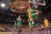 洛杉矶湖人队,1947年成立于明尼阿波利斯,1960年搬迁到了洛杉矶。湖人队是一只球队文化极其丰富的球队,至今出现过许多球星,如“天勾”的贾巴尔,魔术师约翰逊,小飞侠科比,大鲨鱼奥尼尔等。湖人队史共56次进入季后赛、31次获得西部冠军、16次获得总冠军,仅次于波士顿凯尔特人队。