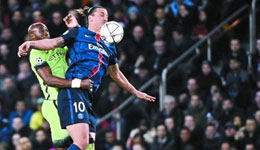 巴黎主场2比2战平曼城 伊布破门罚失点球