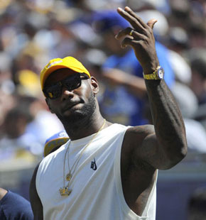 詹姆斯观看橄榄球赛 詹姆斯带儿子一起助威