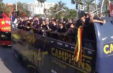 巴萨在客场3-0完胜格拉纳达之后,以1分的优势力压死敌皇马夺得冠军。次日他们在巴塞罗那举行花车游行,球员们和球迷们一同享受这夺冠的激情时刻。巴萨夺冠等更多巴萨相关视频尽在体球网。...
