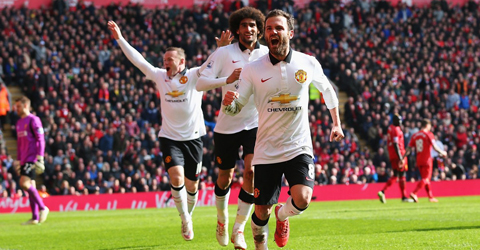 英超-马塔双响杰队闪红 利物浦1-2曼联