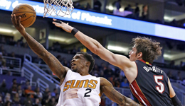 北京时间1月4日消息,太阳对阵热火NBA常规赛。热火德拉季奇在首节开始阶段打出一波8-2的小高潮,反观太阳一直处于被动追分的状态直到第二节巴博萨助队打出一波11-0完成反超。比赛最终太阳以99-90熄灭热火,德拉季奇24分9助攻,布克27分,钱德勒5分20篮板。...