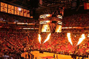 迈阿密热火队,于1988年成立并加入NBA,美国男篮职业联赛(NBA)东部联盟东南赛区的一部分。2003年热火队以首轮第五顺位签下韦德,2005年韦德与奥尼尔联手拿下首座NBA总冠军奖杯。好景不长,随后的几年战斗力大不如前,直到2010年波什与詹姆斯加盟组成三巨头,在2012年与2013年连续两个赛季夺得总冠军。