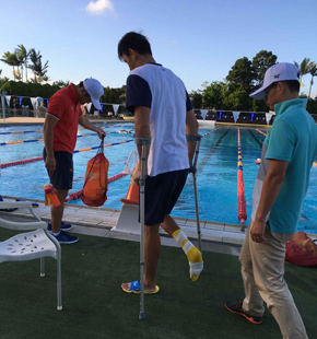 孙杨骨折后初次下水 单腿50米游进28秒