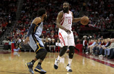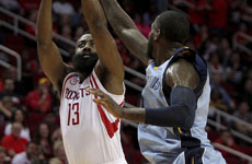 NBA常规赛3月5日灰熊VS火箭,哈登反击单臂暴扣得手。...