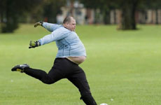 土豪青年Iphone炫球技 苹果手机被插花脚远射踢爆