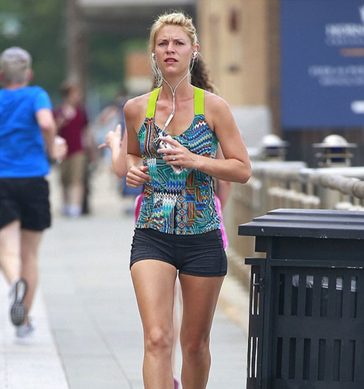 克莱尔·丹尼斯户外跑步 街头跑步健身难掩傲人身材