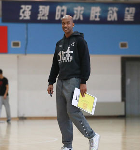 北京男篮公开训练课 马布里手拿战术板客串教练