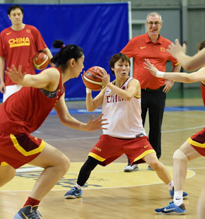 女篮训练备战落选赛 主教练马赫一脸严肃