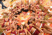 北京时间5月27日消息 骑士4-0横扫老鹰晋级总决赛,拉拉队美女也兴奋不已,久久留在球场不愿离去。...