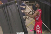哈登怒推栏杆撒气 心情糟糕到极点