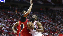NBA常规赛火箭VS鹈鹕 哈登41+14+11难救主