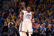 北京时间4月10日,雷霆在领先两位数的情况下仍出现险情,最终客场击败劲敌快船。雷霆二连胜。凯文-杜兰特26投8中,得了27分,拉塞尔-威斯布鲁克抢下一个关键进攻篮板,得了30分、11个篮板和6次助攻。快船功亏一篑,布雷克-格里芬得了30分12个篮板,克里斯-保罗25分8次助...