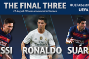 欧足联赛季最佳球员3人候选。8月12日晚间22点,欧足联在官方网站上宣布2014/15赛季欧足联最佳球员(UEFA Best Player)的3名候选。巴萨巨星梅西、苏亚雷斯,皇马头牌C罗入围三甲。...